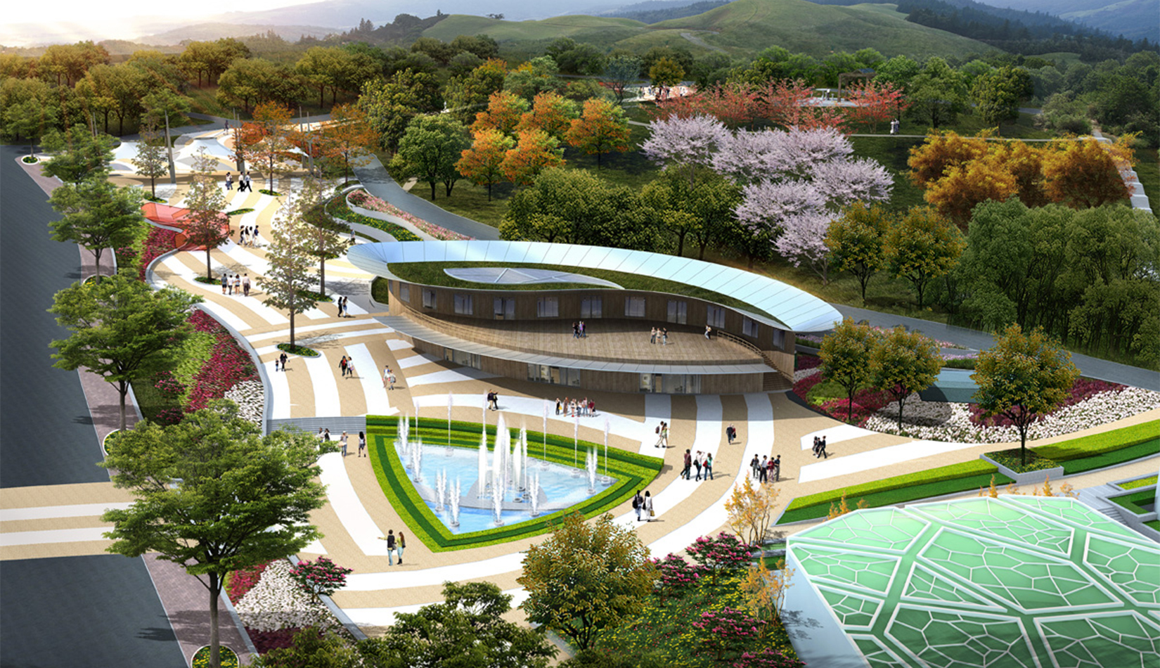 本案設(shè)計(jì)構(gòu)思“一花一世界”。月季、玫瑰,都屬于薔薇科薔薇屬的植物,但他們屬于不同的種。
